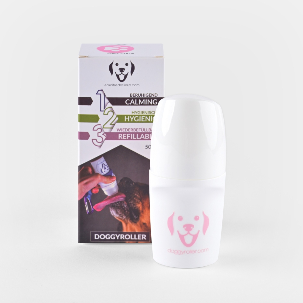 Le DoggyRoller est également un formidable outil d’apaisement ou de détournement d’attention en positif. En effet, en léchant le roll-on, votre animal sécrète de l’endorphine (hormone du bonheur) ce qui permet de l’apaiser lors de situations stressantes ou de le distraire pendant les soins ou le toilettage.