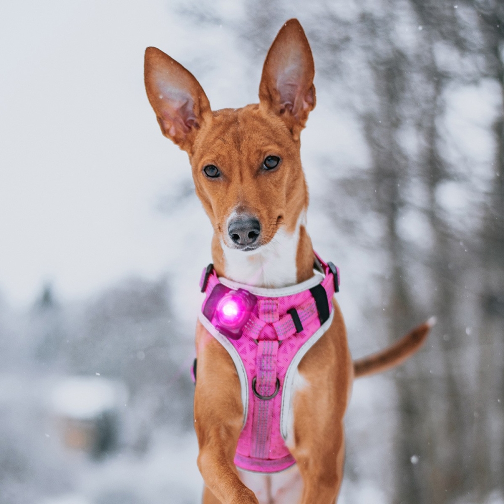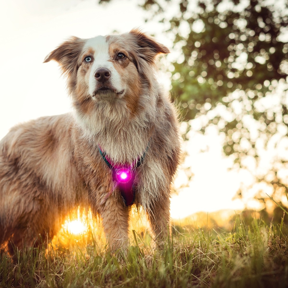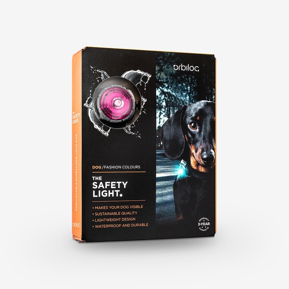 L’Orbiloc est disponible en différentes couleurs ; vous pouvez ainsi l’associer au harnais ou au collier de votre chien, ou même attribuer un code couleur à chacun de vos compagnons, afin de les distinguer la nuit.