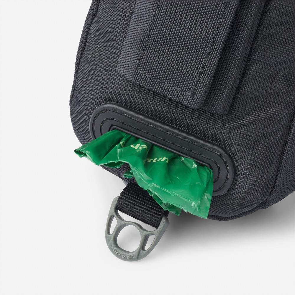 Une ouverture zippée permet d'accéder aux friandises de votre compagnon, et un second espace de rangement à l'intérieur vous permettra d'y ranger vos clés ou votre carte de crédit. Enfin, un distributeur intégré permet de ranger un rouleau de sacs à déjections afin qu'ils soient prêts à l'emploi.