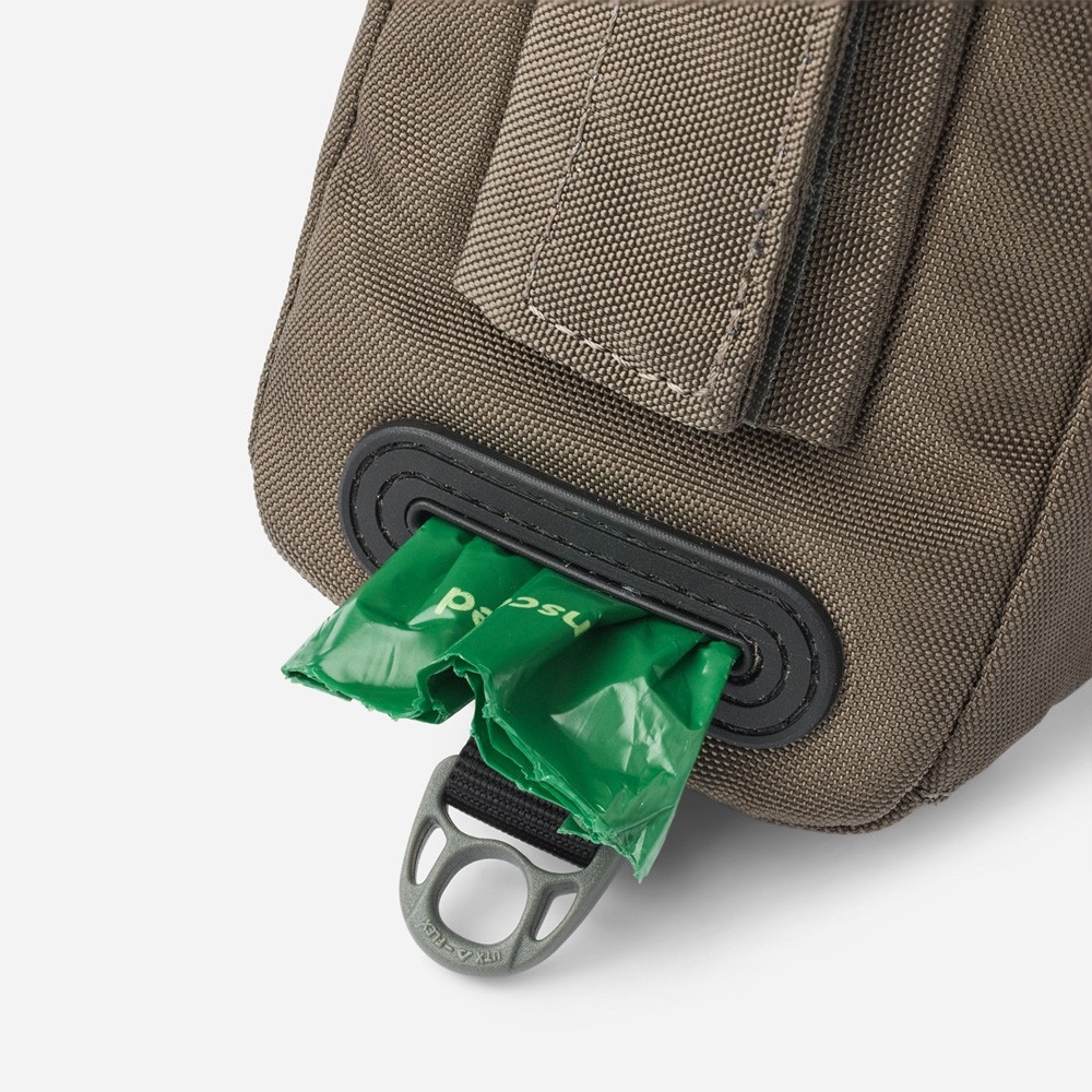 Une ouverture zippée permet d'accéder aux friandises de votre compagnon, et un second espace de rangement à l'intérieur vous permettra d'y ranger vos clés ou votre carte de crédit. Enfin, un distributeur intégré permet de ranger un rouleau de sacs à déjections afin qu'ils soient prêts à l'emploi.