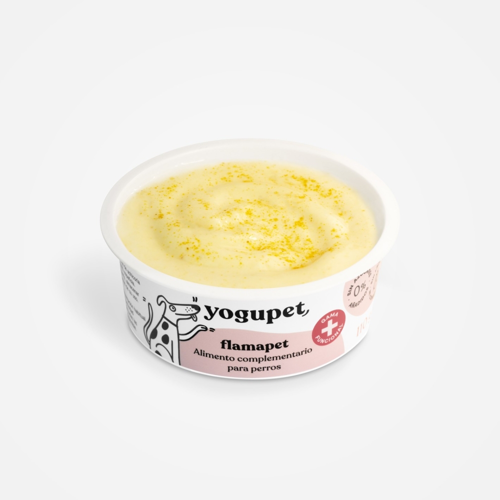 Yogupet Flamapet est un yaourt pasteurisé sans lactose pour chien, pensé pour compléter le régime alimentaire de votre animal de compagnie de façon saine et naturelle, avec tous les bénéfices du yaourt, de l’inuline, du collagène, du miel et du curcuma.
