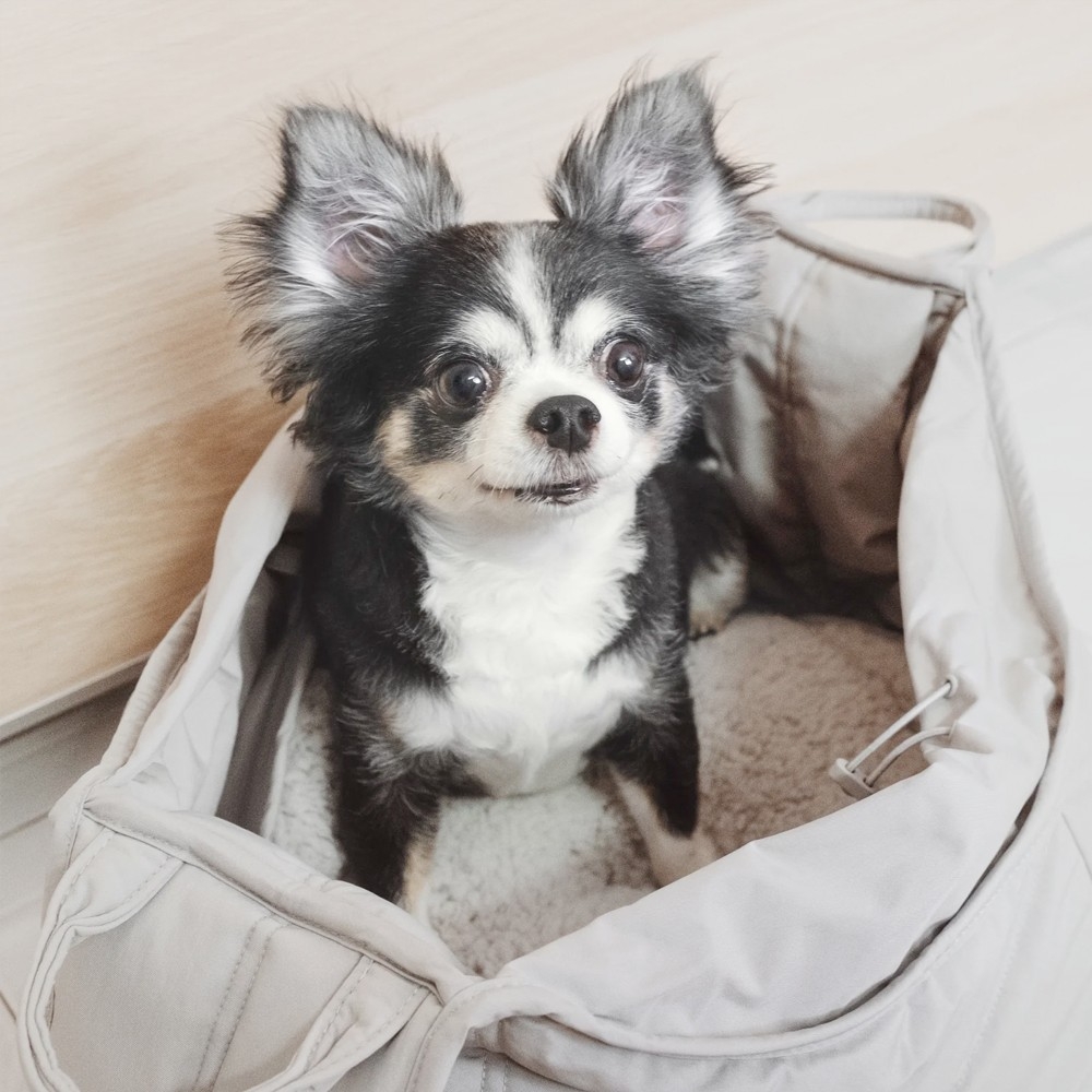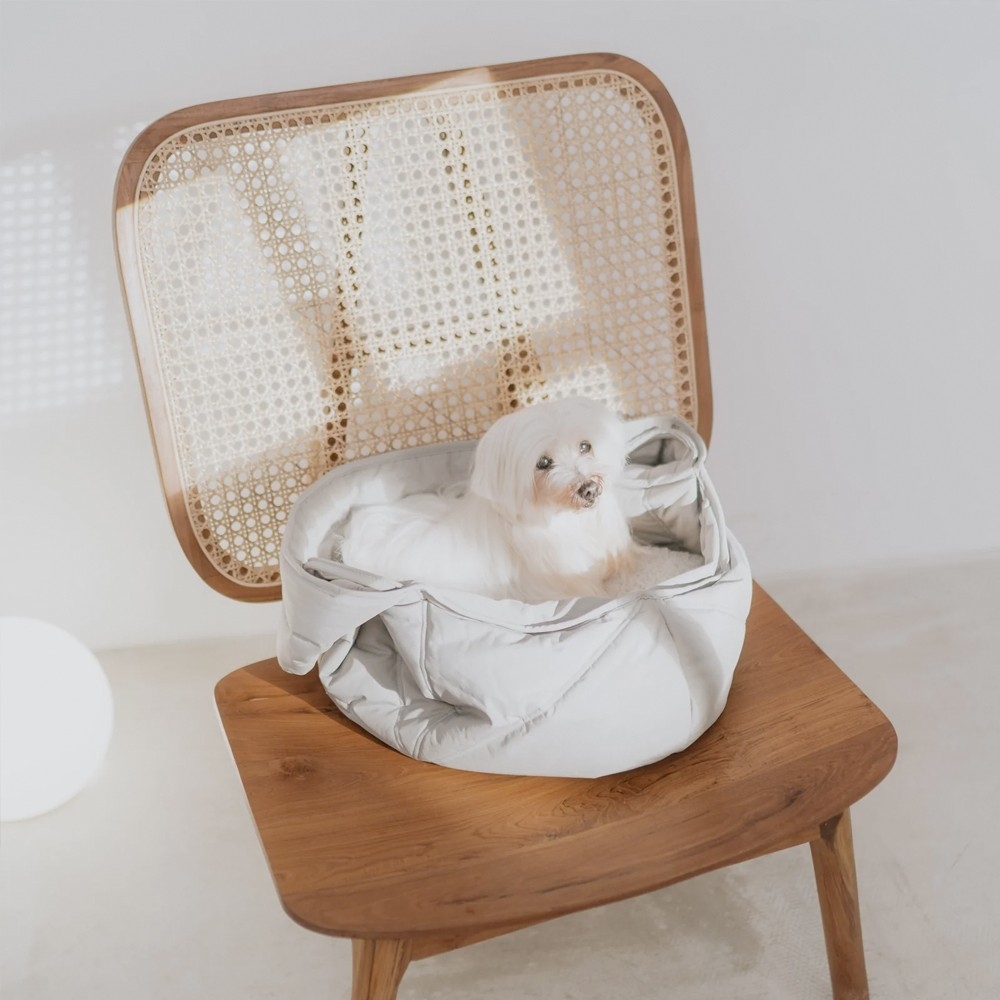 Adapté à toutes les saisons, Olla possède un revêtement bi-matière afin qu'il puisse basculer entre le côté nylon - hydrofuge et respirant - plus frais pour l'été, ou le côté moelleux plus chaud pour l'hiver. Son coussin amovible est lavable en machine.