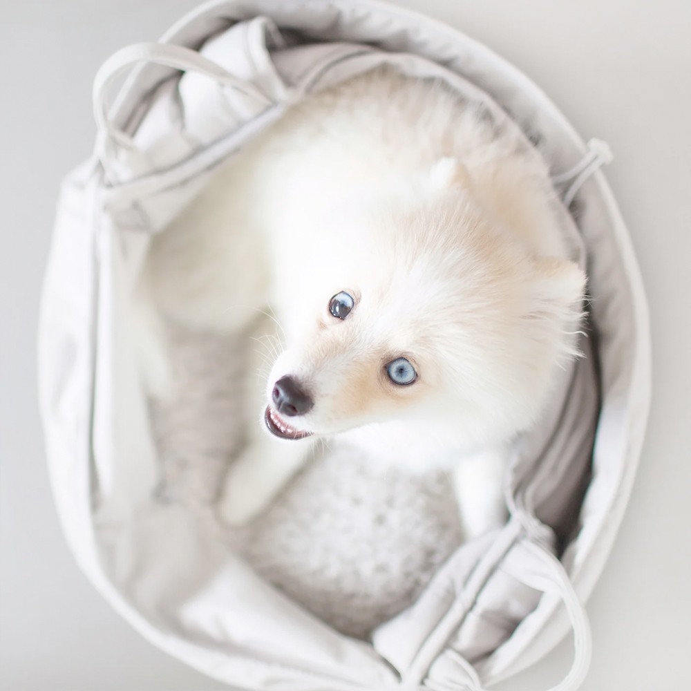 Olla est une petite nacelle nomade signée Lambwolf Collective pour les chats ou les petits chiens jusqu'à 5 kg. Ce petit nid douillet portatif offre un espace confortable à votre tout-petit. Sa conception le rend parfait pour une journée complète au bureau ou chez le dogsitter, une soirée chez un ami ou des siestes pendant les voyages.