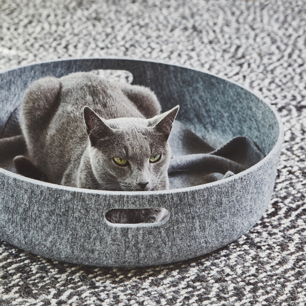 Cesto est un panier multifonctionnel et minimaliste, idéal pour le rangement de vos jouets, plaids ou magazines, mais également pour le repos des chats en quête d’un cocon confortable et sécurisant, grâce à sa forme circulaire.