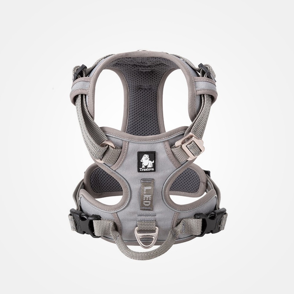 True Love a prévu deux points d'attache : une sur le dos et une anti-traction, située sur le torse. Une poignée est également présente sur le dessus du harnais, afin de pouvoir aider votre compagnon sur des terrains complexes ou de le rattraper si nécessaire.