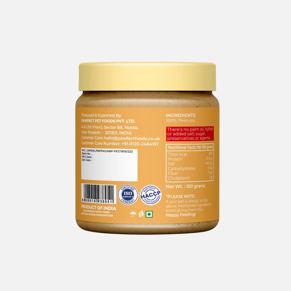 Ce beurre de cacahuète de la marque Pawfect, spécialement développé pour les chiens, est composé uniquement de cacahuètes fraîchement grillées sans sel, sans sucre, ni ajout d'huile. Il est parfaitement adapté aux besoins nutritionnels des chiens. Vous pouvez le donner en guise de friandise, l’étaler sur vos tapis de léchage, l’incorporer dans vos recettes ou même le savourer en tant qu’humain ;-) C'est également un bon support pour administrer un médicament.