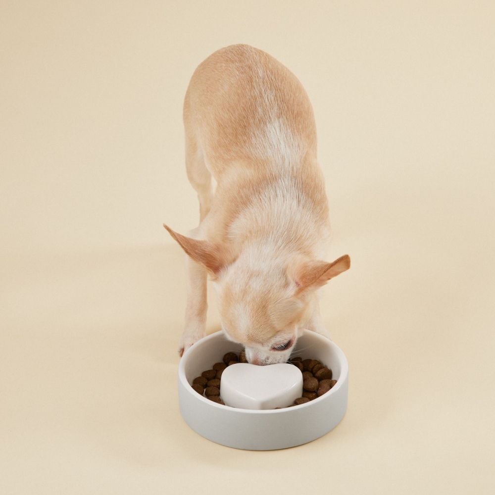 En effet, grâce au coeur présent dans le fond de sa gamelle, votre compagnon prendra davantage de temps pour manger et se sentira rapidement plus rassasié. Ce dispositif constitue une excellente prévention contre la sur-consommation, les indigestions et les ballonnements. La mastication prolongée est favorisée ; celle-ci permet une bonne production de salive, contribuant à limiter les problèmes d’hygiène bucco-dentaires.