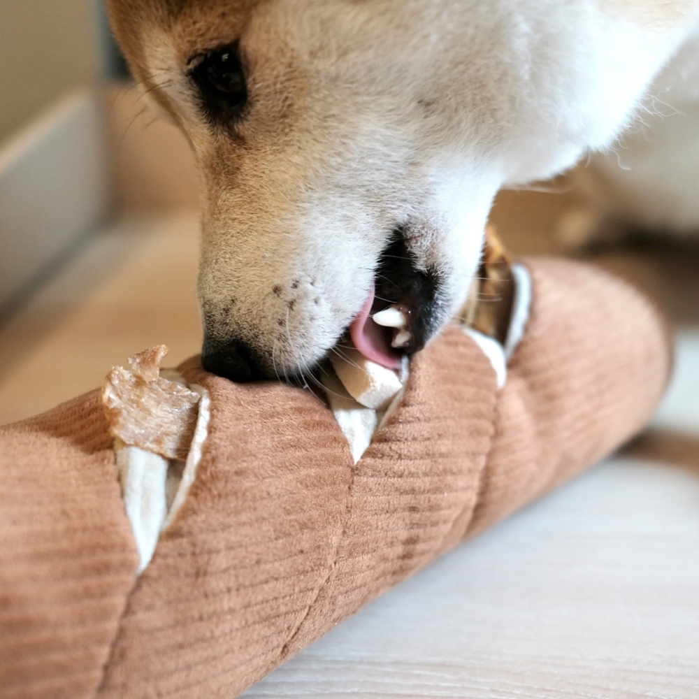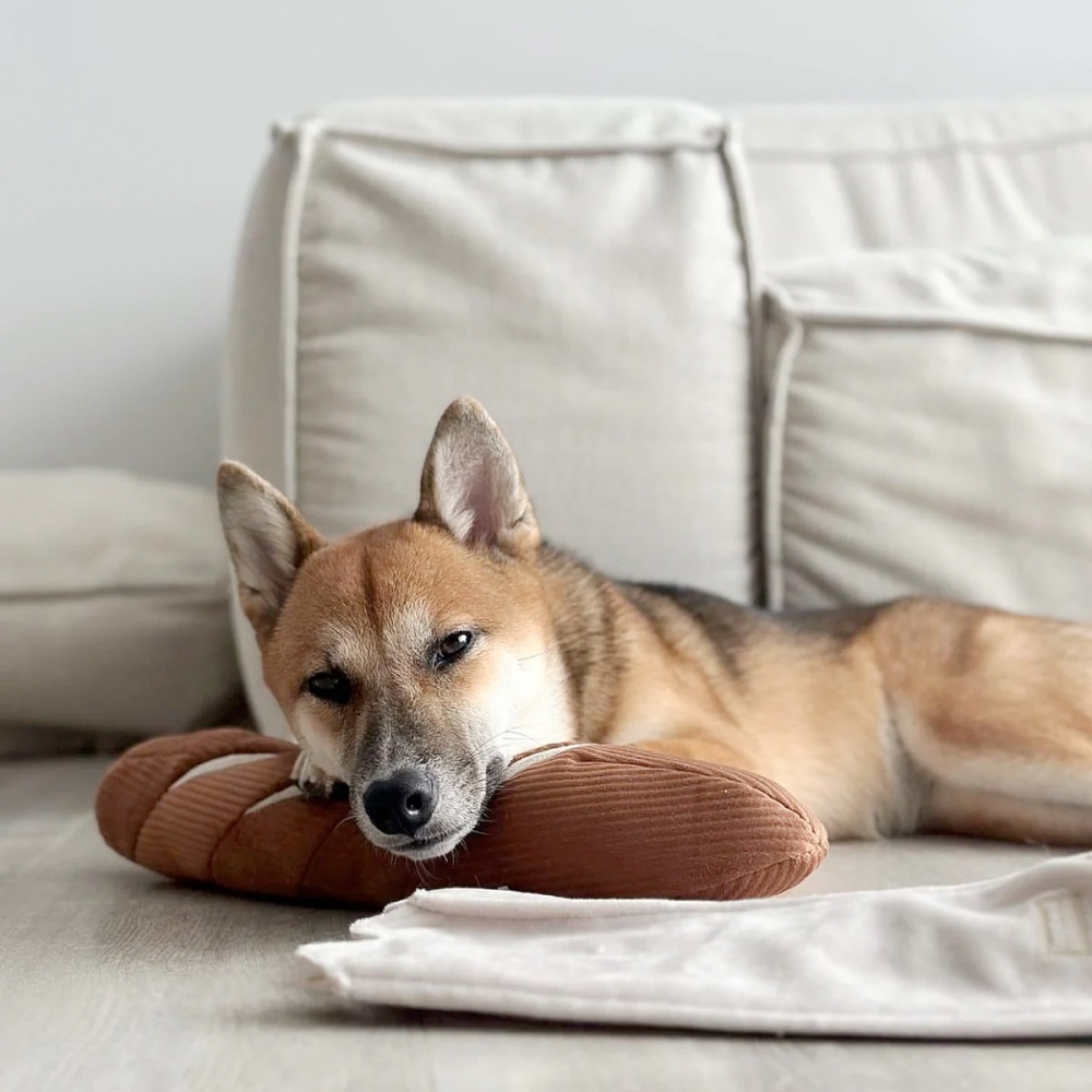 Oui, oui, baguette ! Il ne manque plus que le béret ! Cette grande peluche de flair en forme de baguette de pain est signée Lambwolf Collective. Avec plusieurs cachettes pour y insérer des récompenses de toutes tailles, des morceaux de lamelles de viandes ou des croquettes, cette peluche sera idéale pour les activités de fouille de votre chien, mais fera également un excellent appuie-tête ! Cette baguette vous est proposée avec un emballage tout doux contenant du papier froissé, dans lequel vous pourrez cacher encore plus de friandises ! Deux larges couineurs sont situés aux extrémités de la baguette afin de stimuler les sens de votre compagnon.