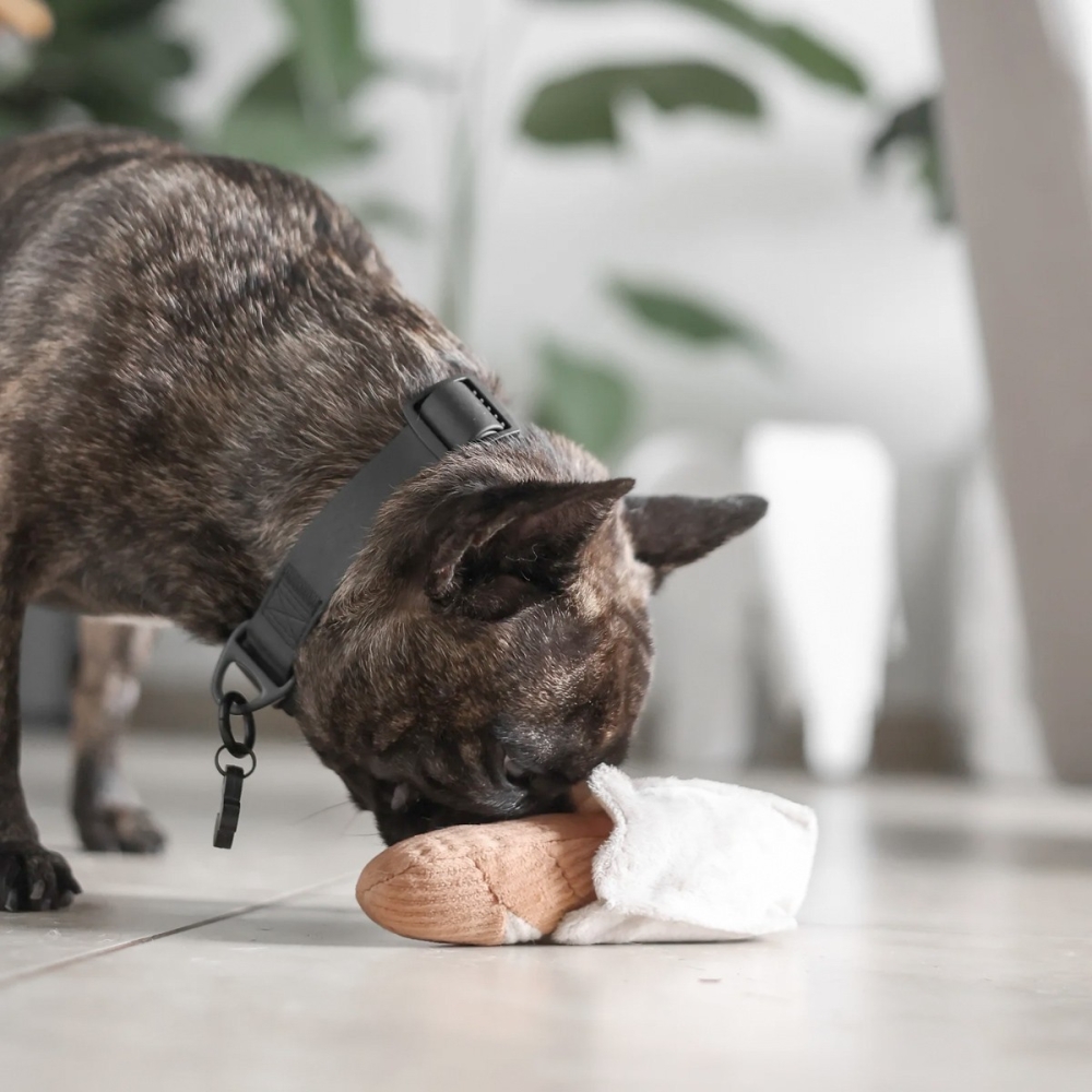Une demi-baguette pas trop cuite... et avec des surprises s'il-vous-plaît ! Cette petite peluche de flair en forme de baguette de pain est signée Lambwolf Collective. Avec une grande cachette pour y insérer des récompenses de toutes tailles, des morceaux de lamelles de viandes ou des croquettes, cette peluche sera idéale pour les activités de fouille de votre petit chien ! Cette baguette contient un couineur et vous est proposée avec un emballage tout doux contenant du papier froissé, dans lequel vous pourrez cacher encore plus de friandises !