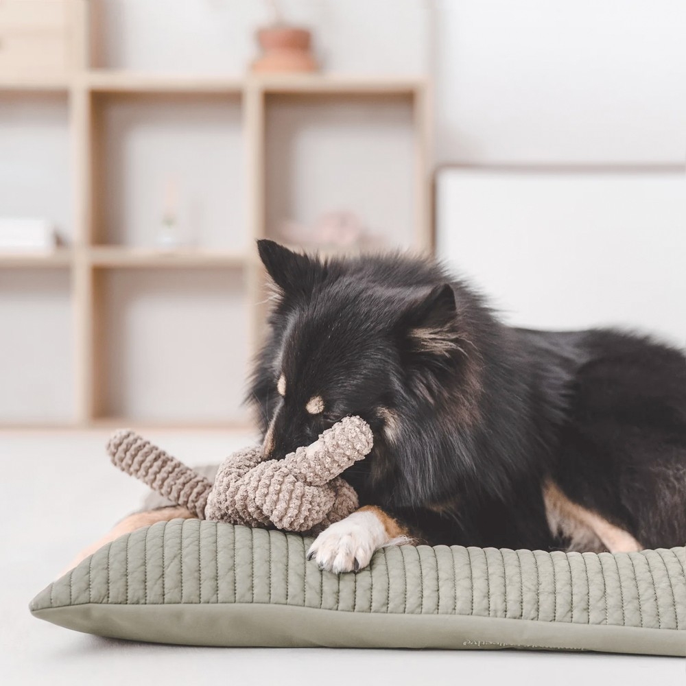 Aussi divertissant pour vous que pour votre compagnon, Nou fait appel à votre créativité. Son tissu ultra souple vous permet de réaliser différentes formes, d’y cacher des friandises, et de diversifier les exercices de votre chien au fil des jours. Vous avez ainsi la possibilité de réaliser des nœuds plus ou moins complexes, d’attacher plusieurs « Nous » ensemble ou de nouer le jouet à une autre peluche selon la difficulté recherchée.