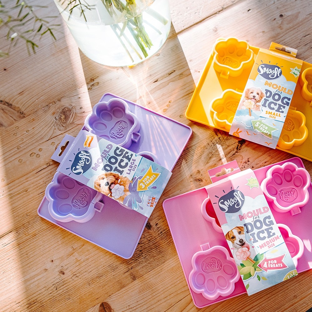 Pour réaliser vos glaces et leur donner un aspect ludique, utilisez les moules à glace Smoofl en forme de pattes ! Ces moules existent en quatre tailles :