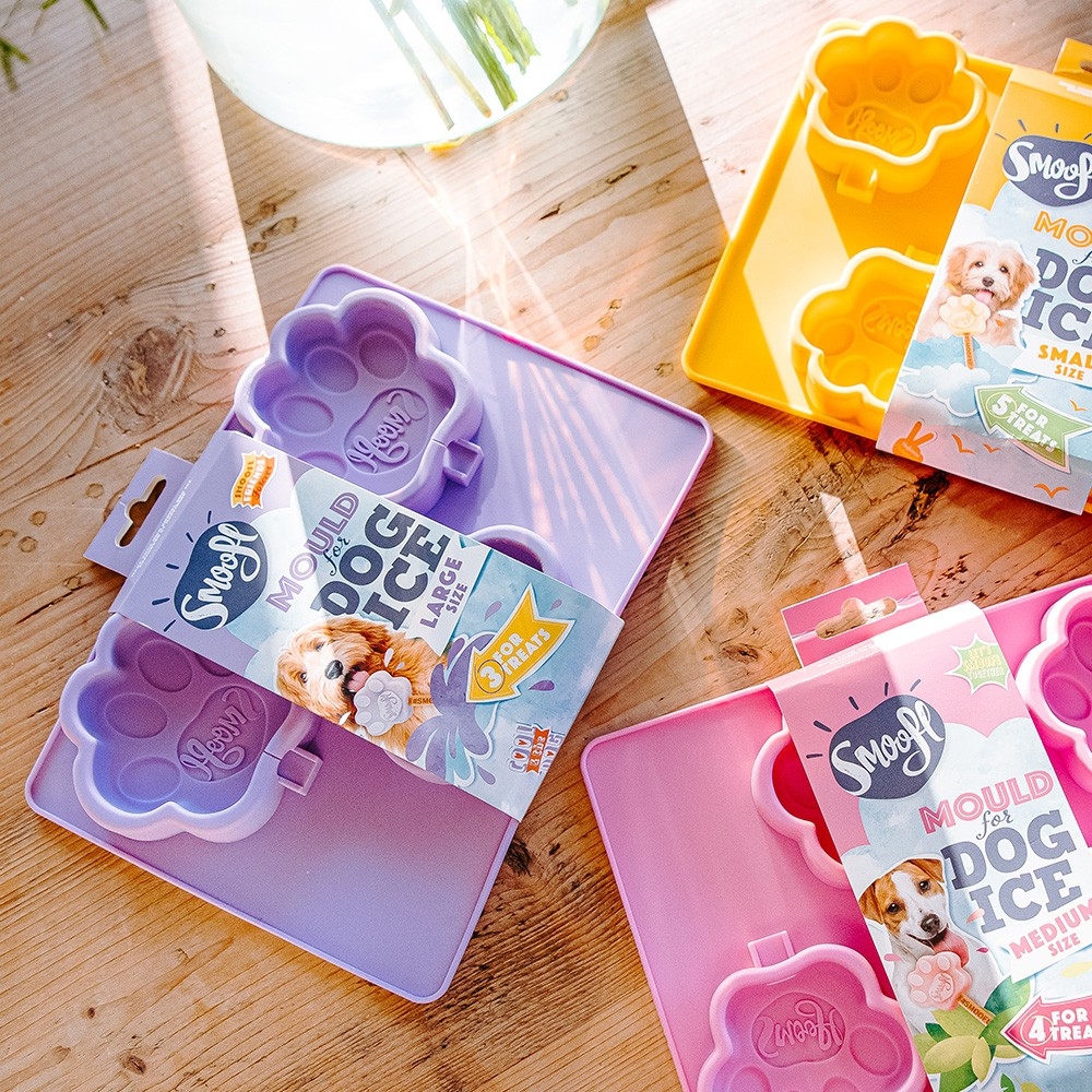 Pour réaliser vos glaces et leur donner un aspect ludique, utilisez les moules à glace Smoofl en forme de pattes ! Ces moules existent en quatre tailles :