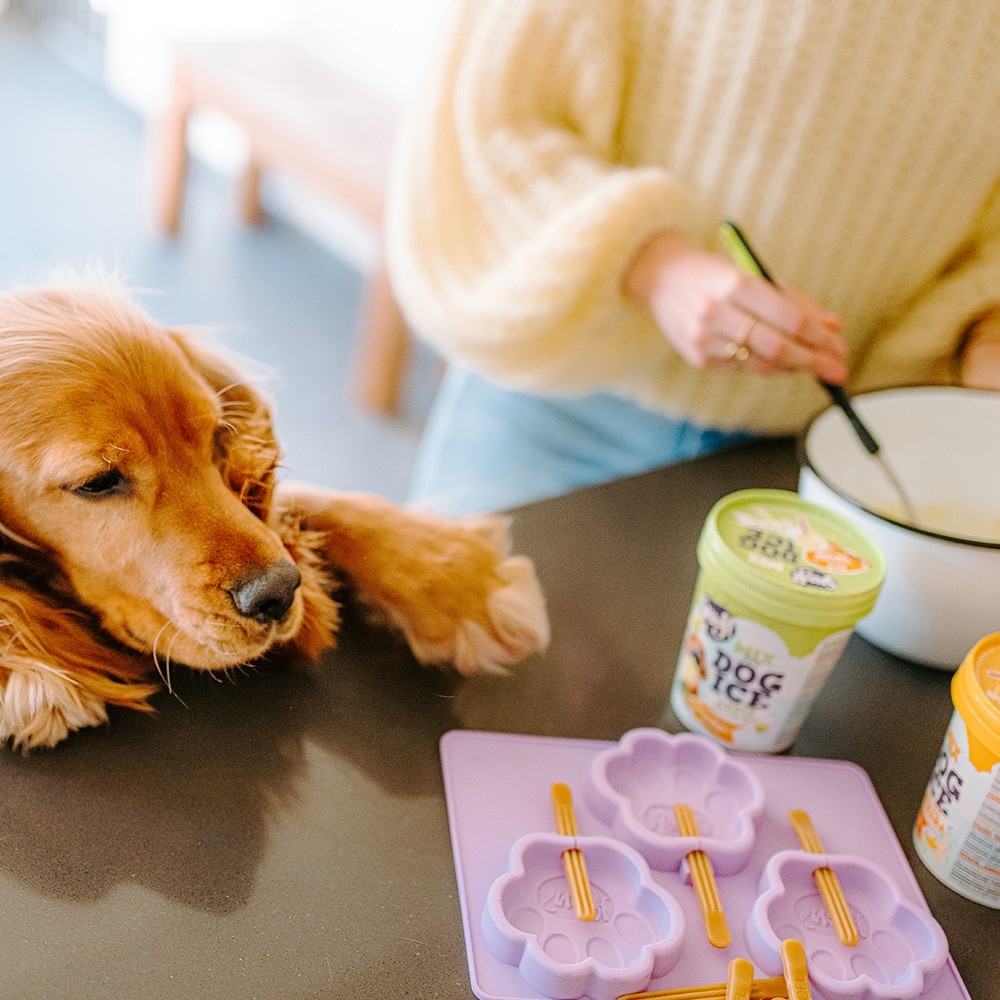 · La taille XS est idéale pour les petits chiens jusqu’à 5kg. 5 formes de glace sont présentes sur le moule et 4 formes de bonbons glacés.
