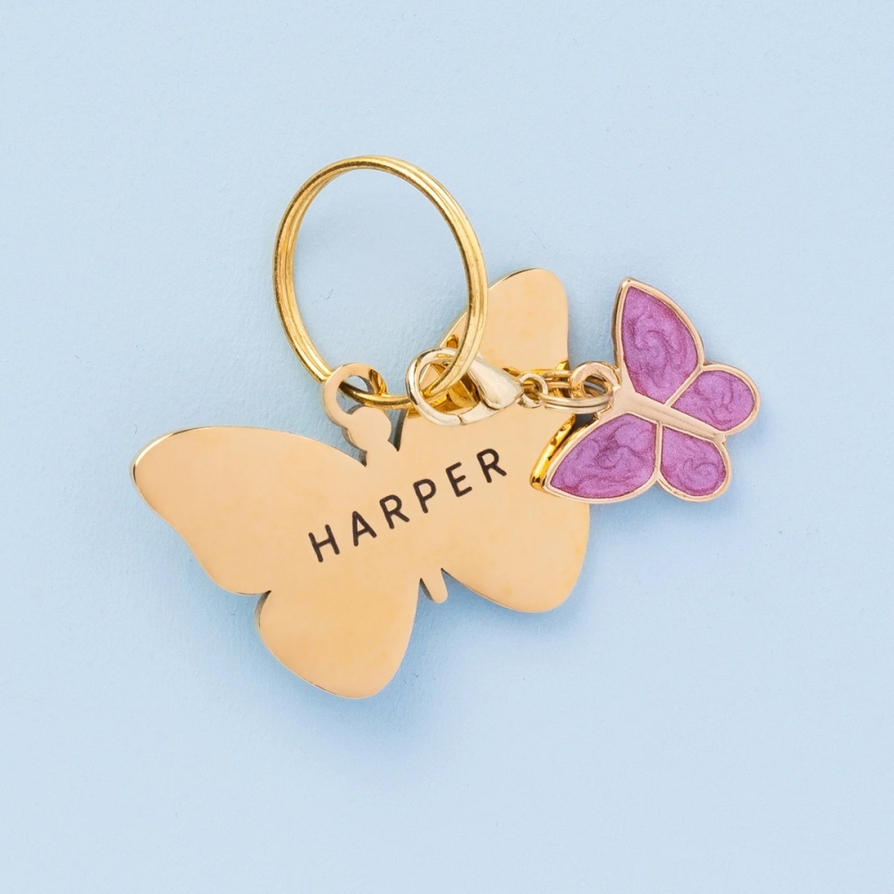Ce charm en forme de joli Papillon rose, est imaginé par the Foggy Dog. Avec un léger aspect nacré et pailleté, il apportera une touche d'originalité à la médaille ou au collier de votre animal.