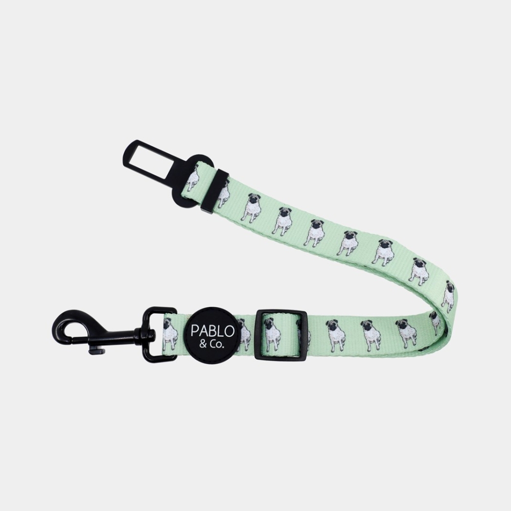 Cette ceinture de sécurité pour chien, signée Pablo & Co, et à l'effigie des Carlins, vous permettra d'attacher facilement votre compagnon dans la voiture.