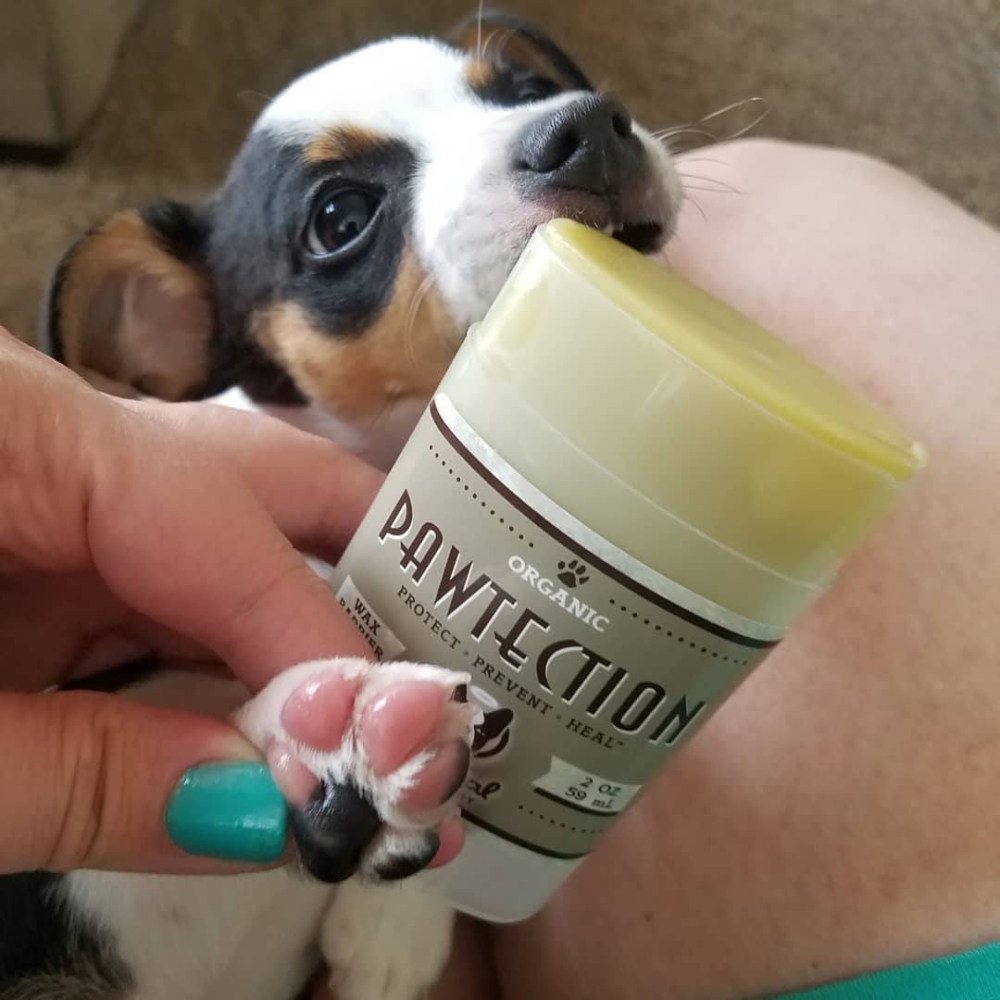 Natural Dog Company attache une importance particulière à n'utiliser que des ingrédients naturels et issus de l'agriculture biologique. Le baume protecteur PawTection est disponible en mini stick de voyage, en stick de 2oz (59mL) ou en 2 formats de pot : 1 oz (30 mL) et 2 oz (59 mL).