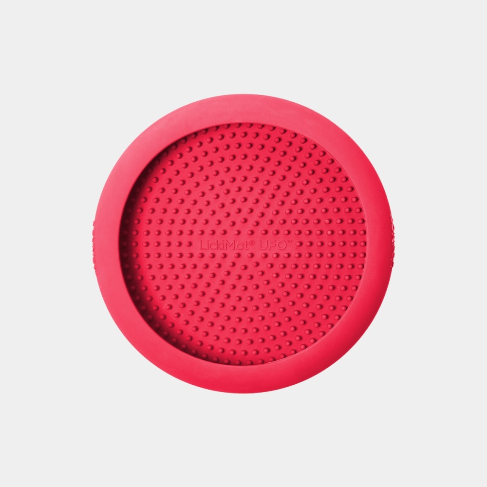 Le Lickimat Ufo a été conçu avec des ventouses ; vous pouvez donc l'utiliser en position horizontale ou verticale, sur du carrelage ou des surfaces vitrées. Sa forme avec rebords est idéale si vous souhaitez l'utiliser en guise de gamelle, afin que le contenu ne déborde pas quelle que soit sa position. Son petit plus : elle nettoie la langue en fin de repas ! En effet, en léchant le fond de la gamelle, les picots doux aident à favoriser une haleine fraîche en frottant les bactéries et les particules alimentaires non digérées à la surface de la langue.